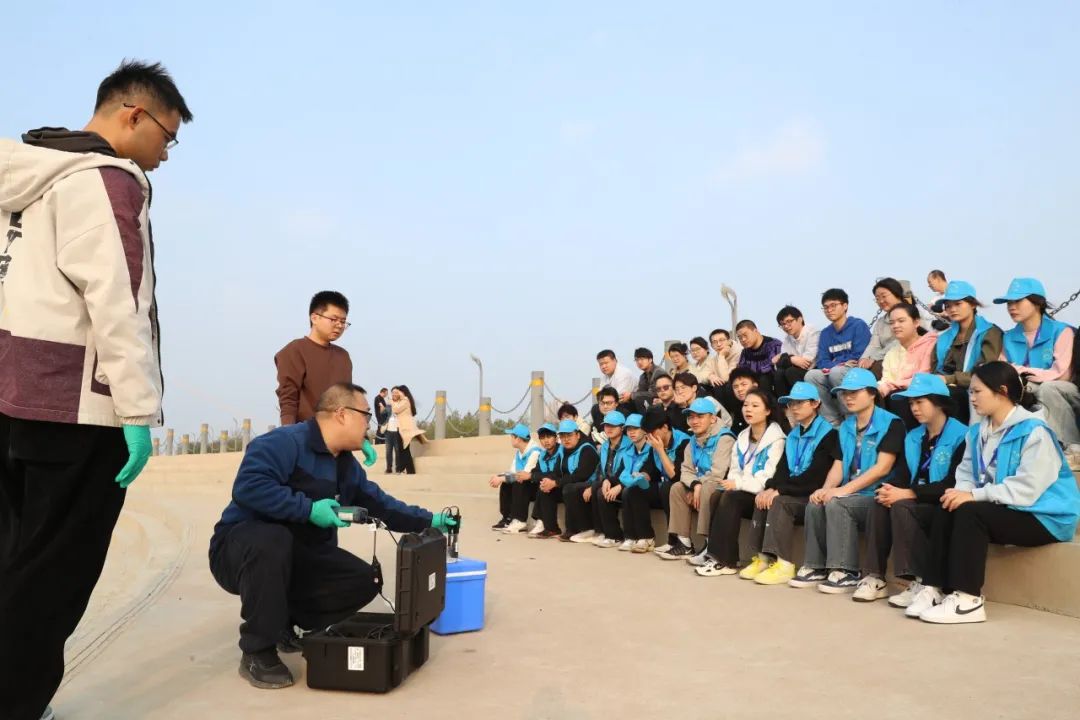 聘任仪式结束后,师生们来到洪山江滩开展户外实践。武汉市生态环境局洪山分局环境监测站的工作人员将水质监测实验和水生态科普知识讲座搬到现场,对如何提纯污水、如何过滤污水、如何处理污水,河湖保护工作面临的问题及采取的相应保护措施进行了详细介绍。洪山区水务和湖泊局排水科负责人倡导大家节约用水,规范排水。来自武昌首义学院马克思主义学院的苏婕副教授还带领大家开展了户外微课堂,通过对洪山江滩人文历史的讲解,让来自五湖四海的师生们直观了解洪山江滩的变化,领悟人水和谐共生的意义。