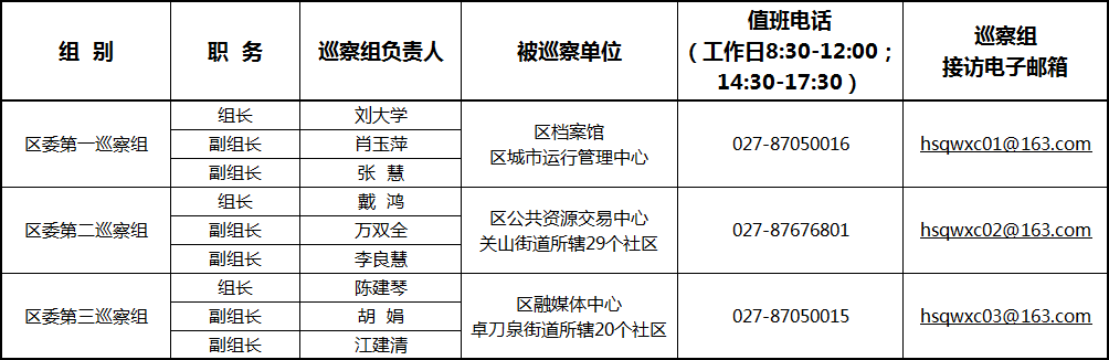 据悉,本轮驻点巡察为期45天。各巡察组巡察期间通过值班电话、电子邮箱、荆楚码上巡等方式,受理反映被巡察单位领导班子及其成员、其他重要岗位领导干部问题的来信、来电、来访。