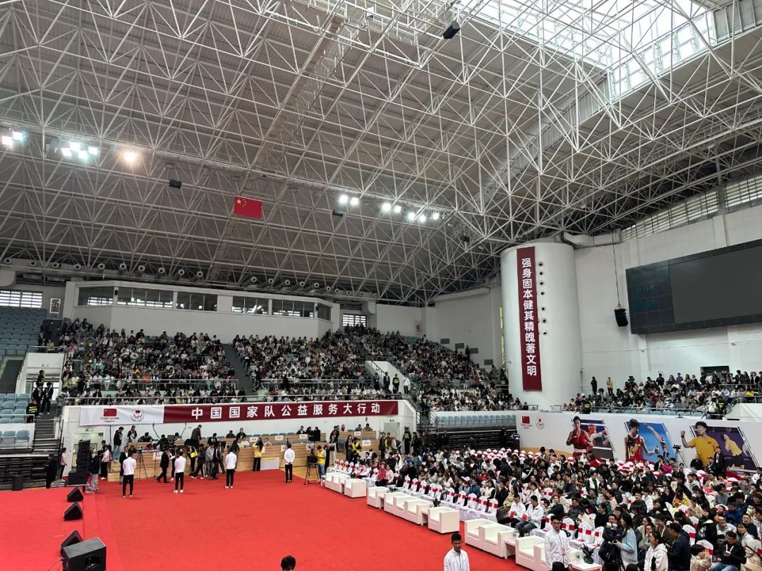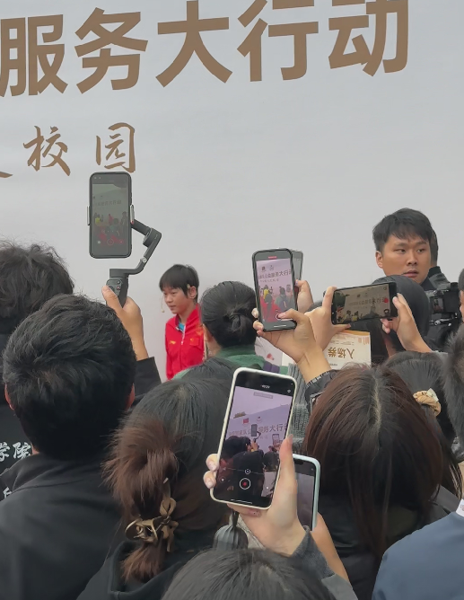 现场,几位奥运健儿的到来引发学子们的热情追随,现场气氛热烈非凡,欢呼声阵阵,将整个场馆装点得活力四射。