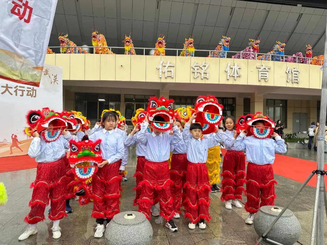 在活动正式拉开帷幕之前,华中师范大学的大学生们与华师附小的稚嫩孩童携手共舞,以龙腾狮跃的热烈场面,诚挚地迎接奥运健儿的到来。