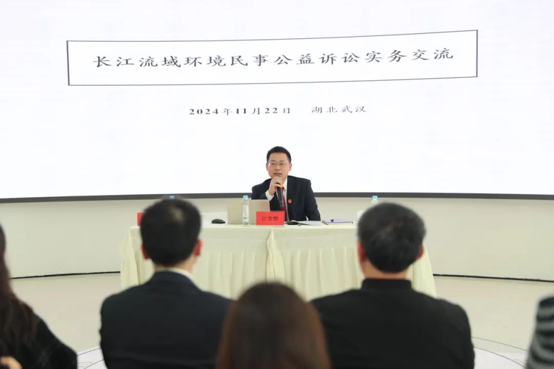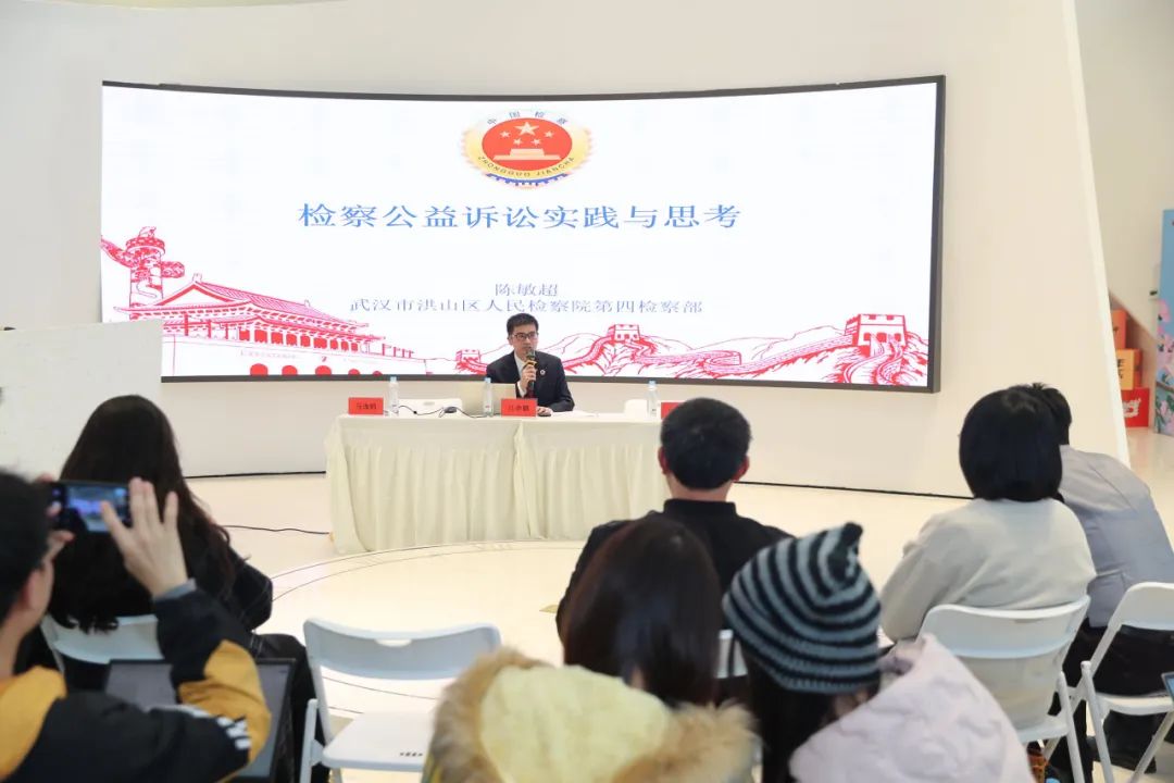 武汉海事法院环境资源审判庭副庭长江章鹏率先分享。他简要介绍了该院的历史沿革,重点围绕环境公益诉讼程序和相关注意事项,分享该院的成功经验做法,为大家打开了维护环境公共利益的大门,指明了制止环境侵害行为的方向。随后,洪山区检察院第四检察部副主任陈敏超带领大家回顾了检察公益诉讼的时代背景和历史意义,分享了个人在从事检察工作中推进环境公益诉讼的心得,指出要切实做到敢于监督、善于监督、依法监督、规范监督。