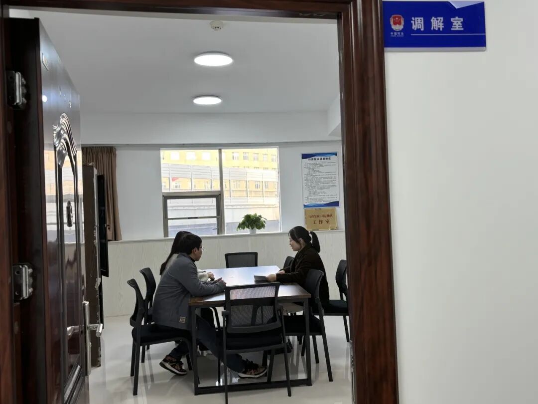 调解室装修风格典雅、舒适,旨在为当事人提供放松的环境,缓解紧张情绪,促进双方沟通。此外还邀请了专业的调解员,他们具有丰富的法律知识和调解经验,通过“背靠背”沟通等调解工作方式化解争议双方心结,推动争议化解端口前移。