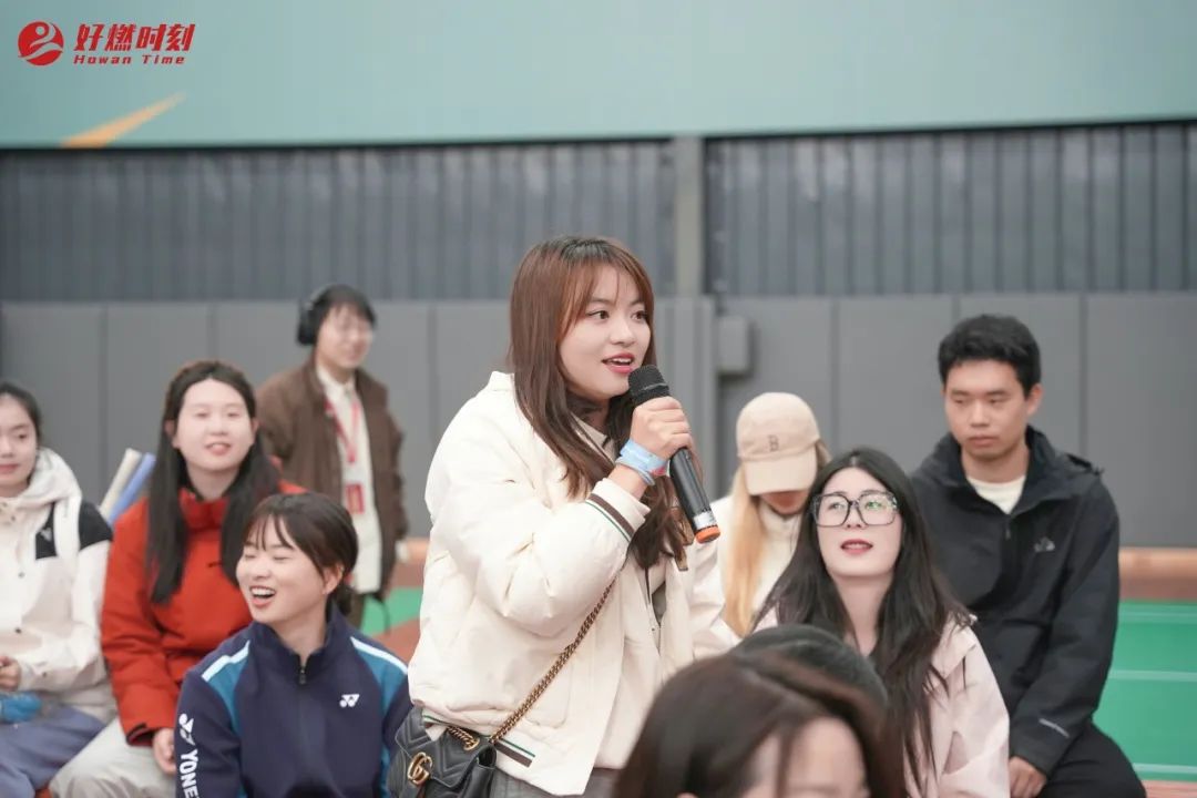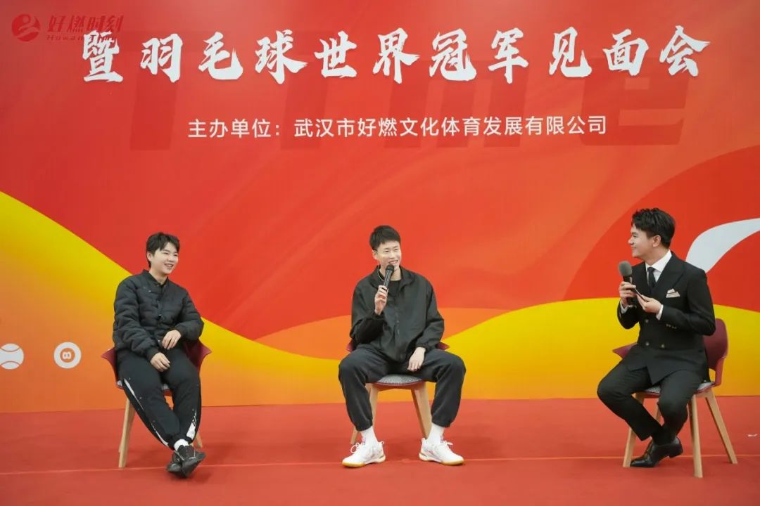 羽毛球世界冠军见面会上,李茵晖、欧烜屹登台分享了自己职业生涯的点点滴滴,并与球迷进行互动问答。