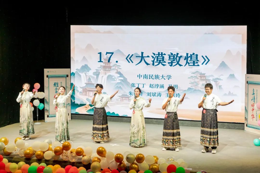 本次活动共有来自洪山辖区的8所高校19支队伍共78名学生参赛,其中有17名来自台湾、香港、澳门的学生,还有来自维吾尔族、壮族、蒙古族等多个少数民族学生,海峡两岸暨港澳地区各民族青年学生共同呈现了一场精彩纷呈的中华经典诗文诵读比赛。