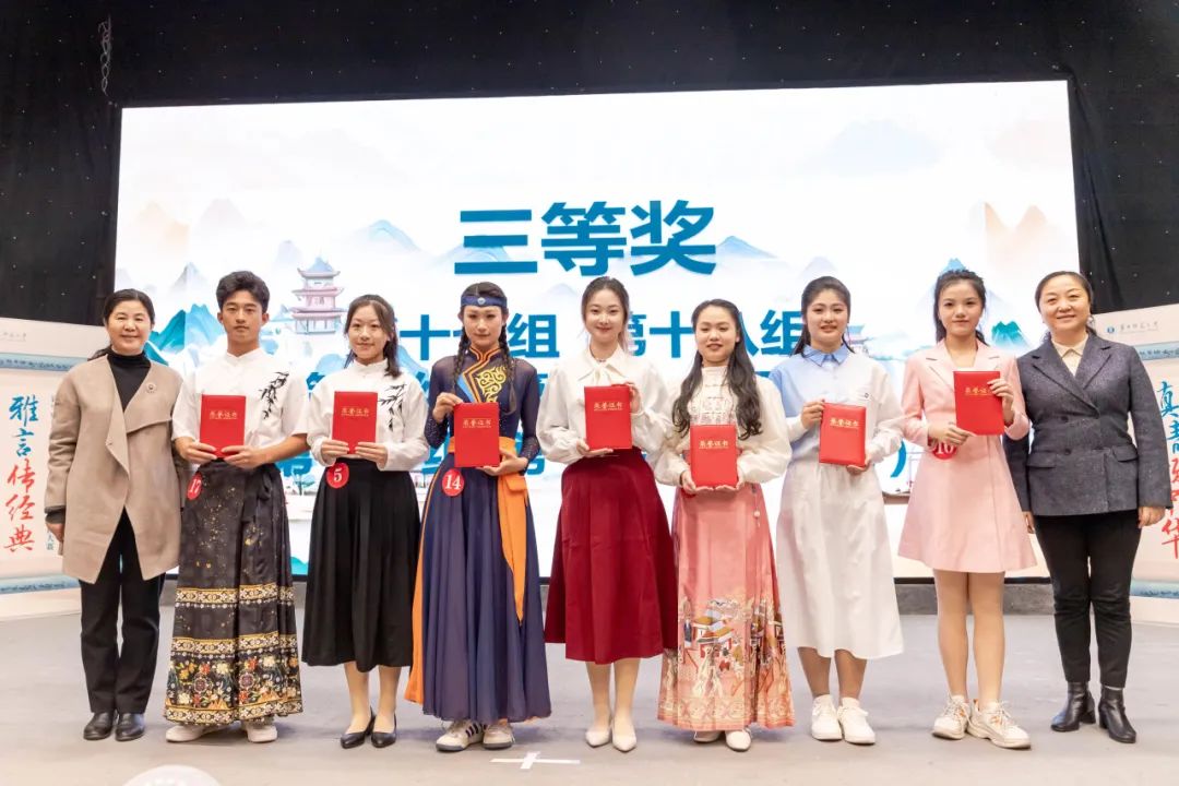 评委从文本内容、艺术表达、语言技巧、仪表形象、整体效果等方面对选手作品进行评分,最终13个节目脱颖而出。其中,华中师范大学代表队《大江颂》、华中科技大学《秋天的怀念》获得一等奖,武汉大学代表队《诗词中的锦绣中华》、华中农业大学《就是那一只蟋蟀》、华中师范大学《祖国颂》、武汉体育学院《就是那一只蟋蟀》等四个节目获得二等奖,中南民族大学代表队《大漠敦煌》、中南财经政法大学《河床》、华中农业大学《我走在早晨的大路上》、华中科技大学《我用残损的手掌》《听听那冷雨》、武汉理工大学《祖国颂》、中南民族大学《父亲的科尔沁》等六个节目获得三等奖。他们以声音为媒,诵读经典、传承文化、表达真情,展现了中华文化与诵读艺术经久不衰的魅力。