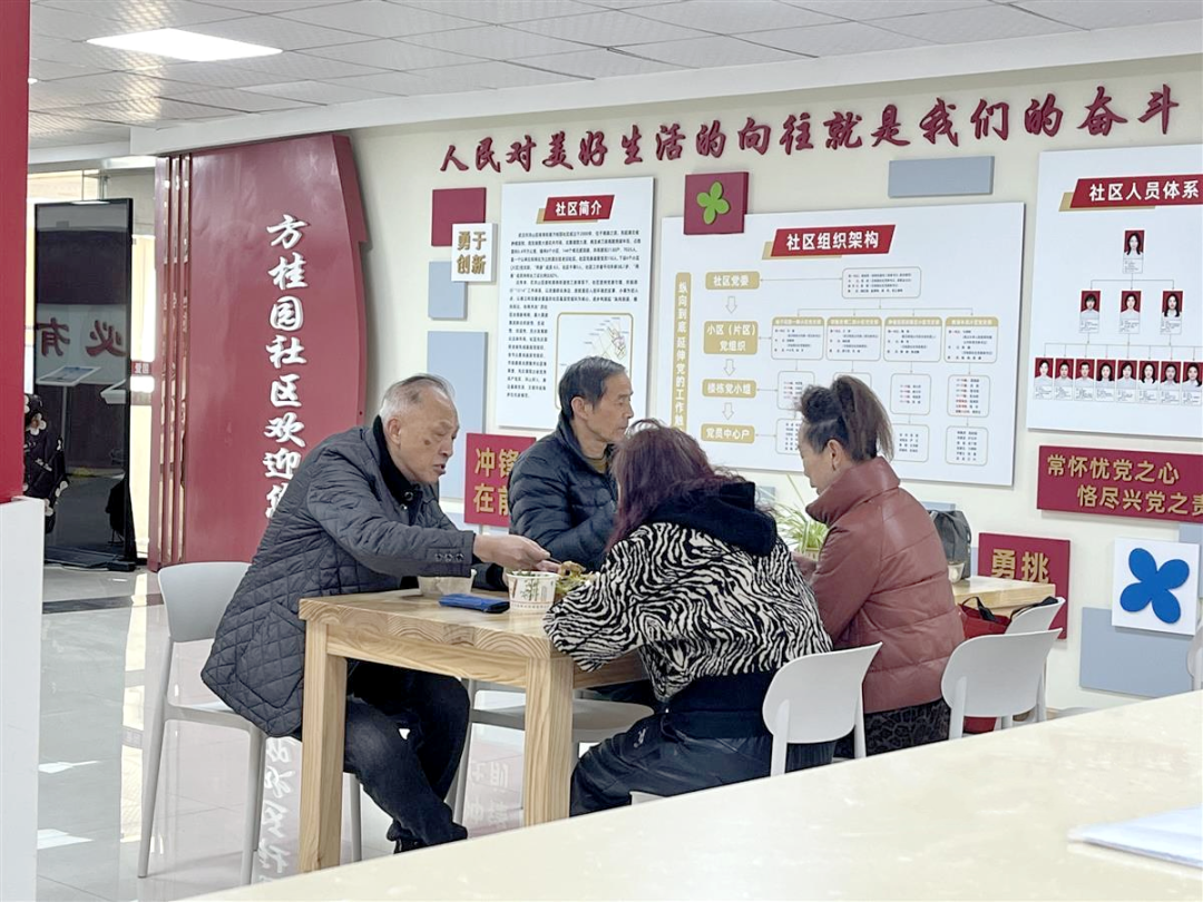 “幸福食堂”是方桂园社区新时代文明实践站谋划已久的新项目,通过“政府主导、社区支撑、物业执行、社会参与、老人共享”的模式,在解决独居老人用餐难题的同时,也促进了老人之间的交流和社会交往。在食品安全方面,幸福食堂严格把关,精选有资质、信誉佳的供应商并严格验收每批食材,建立食品留样制度,确保每一份菜品都安全可靠。