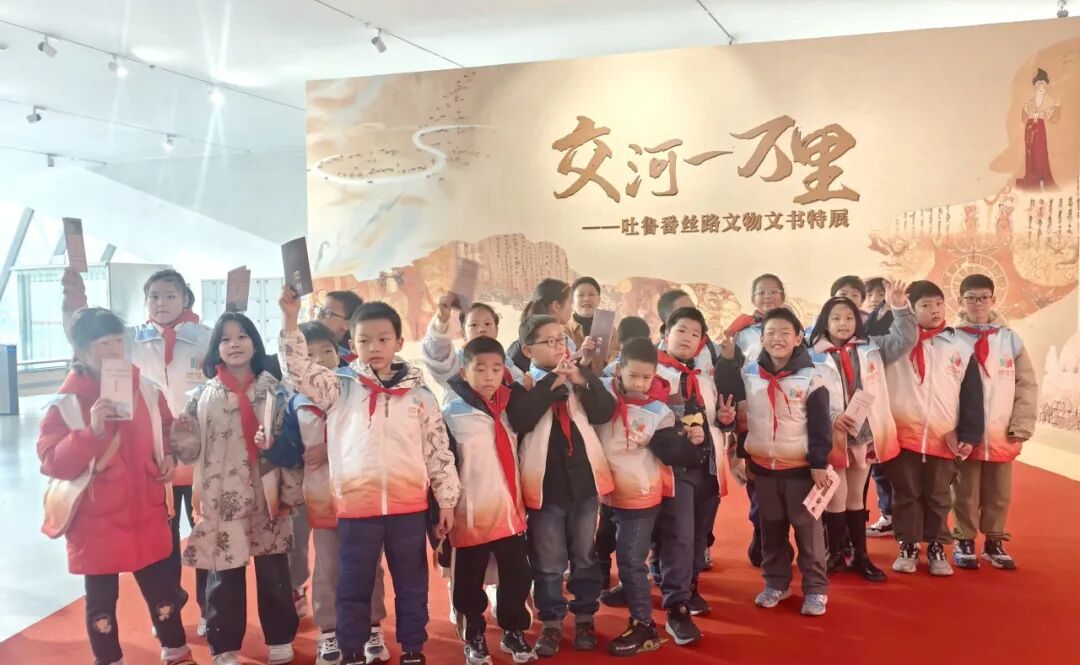 每一件展品都诉说着一段过往的辉煌,孩子们仿佛来到了那个驼铃声声、商贾云集的古丝绸之路,不仅聆听了丝绸之路的悠悠古韵,更目睹了那些承载着千年故事的文物和文书。孩子们在惊叹与敬畏中,深刻感受到了古代丝绸之路的繁荣与魅力。