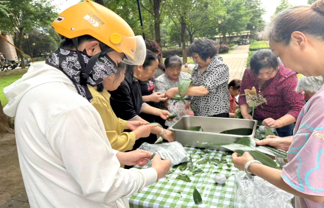 今年端午佳节,社区以“我们的节日”为契机,在驿站开展了“‘粽’享端午、暖‘新’服务”主题活动,社区居民、顺丰快递小哥以及外卖员小哥欢聚一堂,一同包粽子、闯关“除五毒”,共同体验传统文化之美。