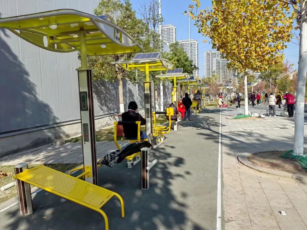 为此,洪山区公园管理中心第一时间带队到现场踏勘、核实,并在洪山区文旅局(体育局)主导下,加装了25套涵盖身体每个部位拉伸锻炼的健身器材,包括推胸训练器、深蹲训练器、提拉训练器等,并设立安全使用注意事项牌。同时,重新铺装了一条全程960多米长的智慧健身步道。严寒中,暗红色的暖色调塑胶材质很显眼,穿梭、环绕在两旁的是斑斓的冬景。