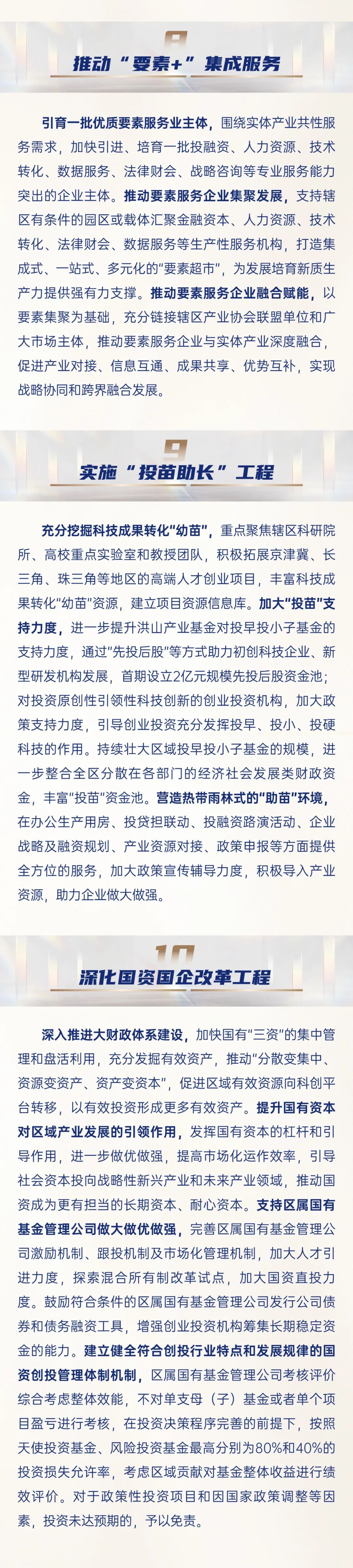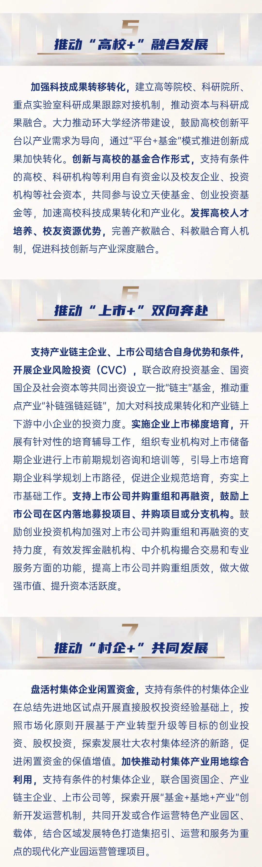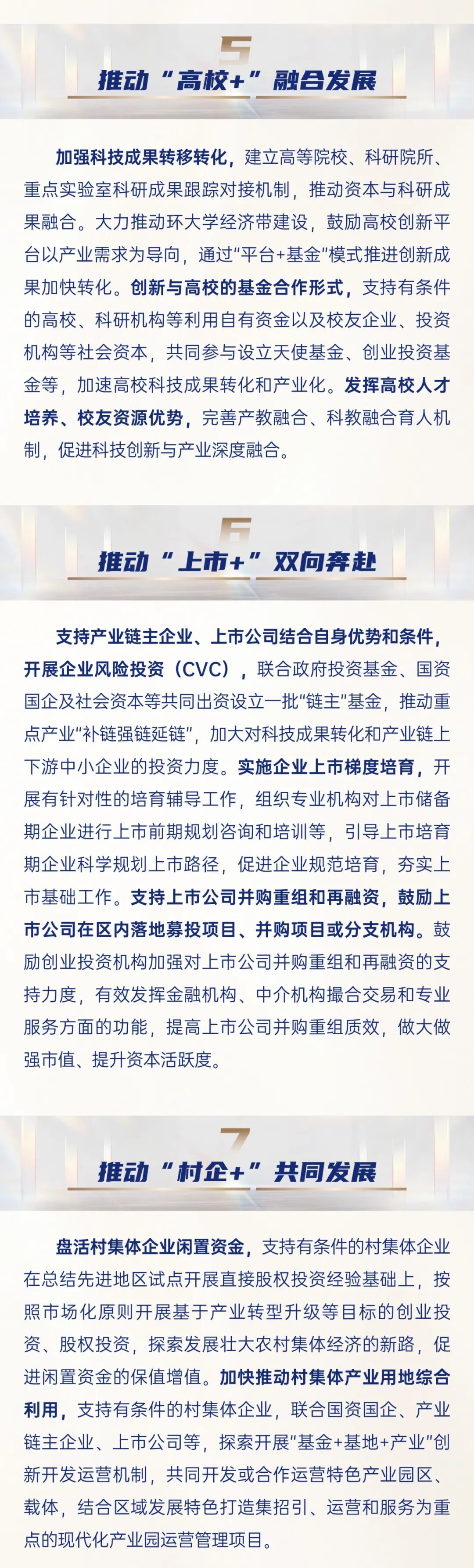 在吸引创投基金聚集上,本次《行动方案》也诚意十足。将洪山区政府引导基金、洪山母基金返投最低比例降低至1倍,也提出分类延长子基金存续期限;面向上市公司、CVC产业资本,洪山区广发“邀请函”,鼓励设立“链主基金”,培育区域重点产业链;积极引导盘活区域村集体企业闲置资金,支持辖区有条件的村集体企业试点开展直接股权投资,壮大区域产业基金规模。
