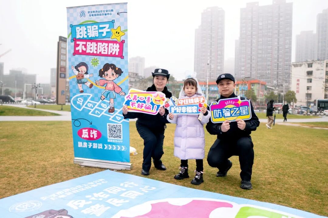 “跳骗子,不跳陷阱!”在互动区,洪山公安分局反诈中心的“反诈跳房子”游戏拥有着极高的人气,这是继人气反诈游戏“反诈飞行棋”之后的又一力作。参与者在跳跃过程中,要历经一系列反诈标语,过关的同时,学到反诈知识。