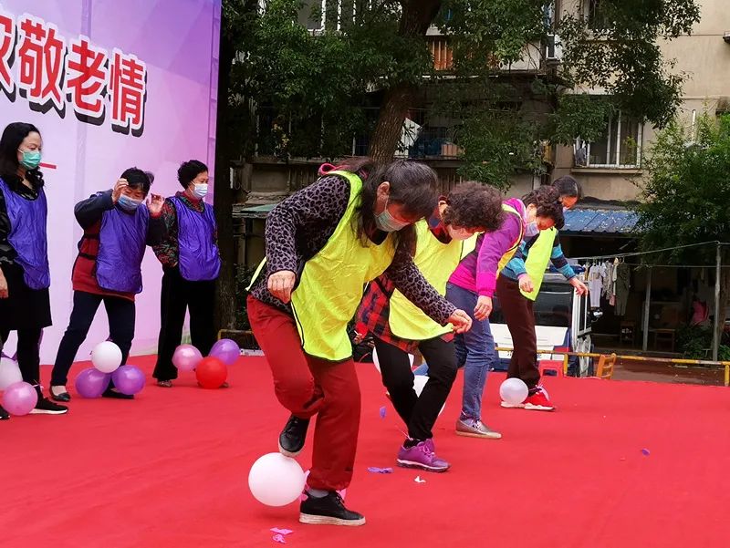 10月21日,在荣军医院生活小区,马庄苑社区邀请辖区老年人一起参加趣味运动会。