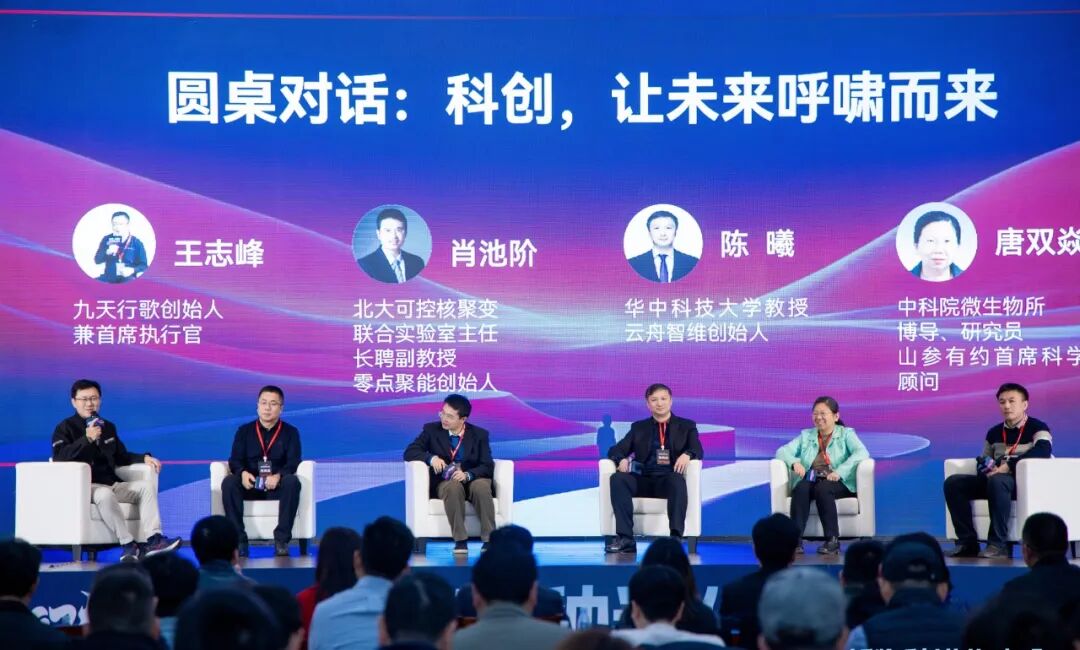 让思想进一步碰撞,让智慧进一步交融,一场主题为“科创,让未来呼啸而来”的圆桌对话紧随进行。九天行歌创始人兼首席执行官王志峰,北大可控核聚变联合实验室主任、长聘副教授、零点聚能创始人肖池阶,华中科技大学教授、云舟智维创始人陈曦,中科院微生物所博导、研究员,山参有约首席科学顾问唐双焱,苏州大学副教授、飒沓智能创始人耿长兴五位科创家围坐一堂,就科技如何赋能产业升级、产学研如何深度融合等热点议题展开深入探讨,共话科创未来。