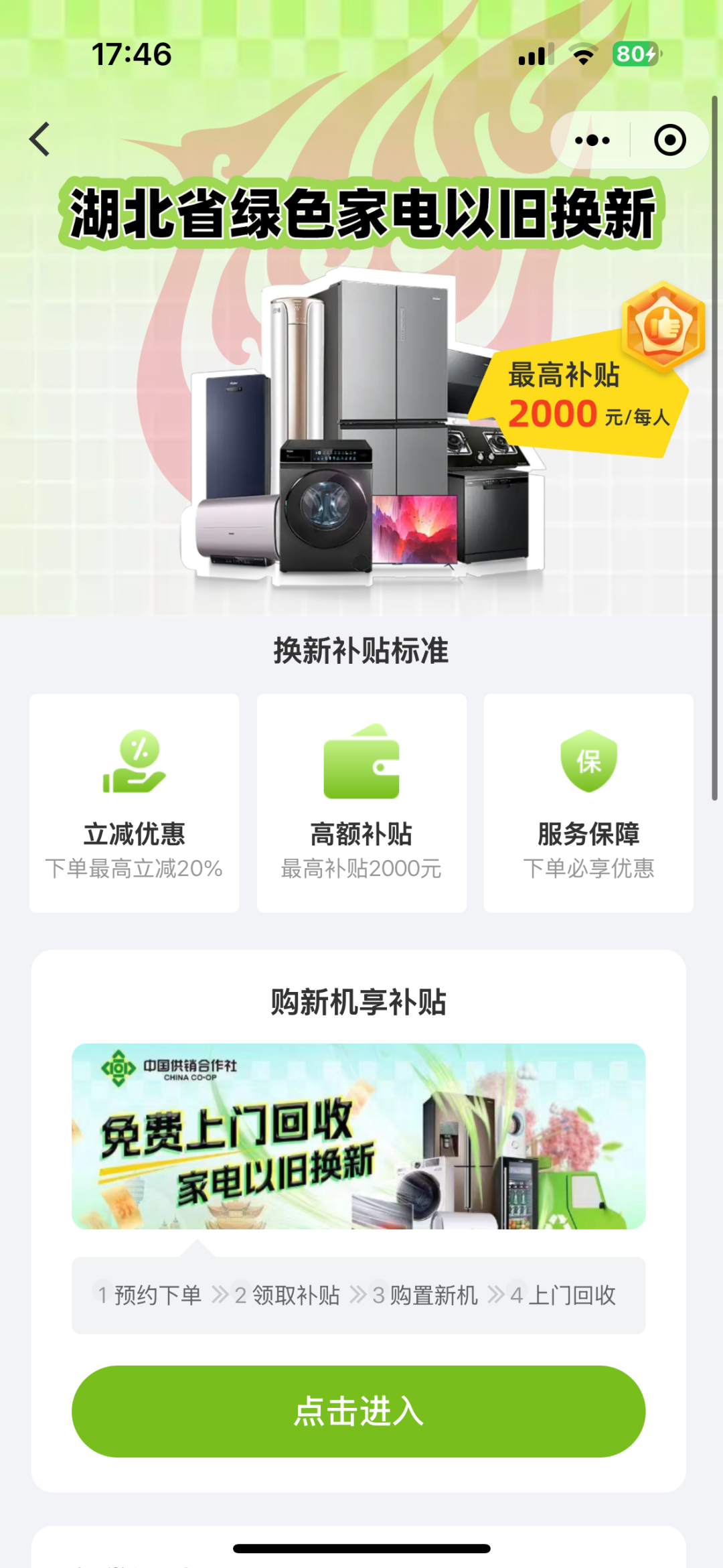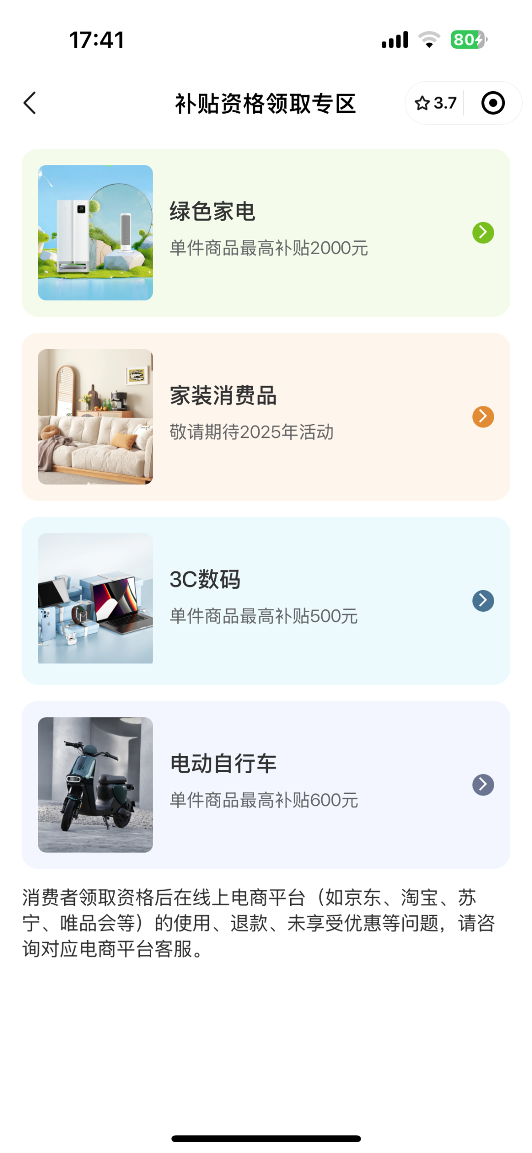 ☞第五步:阅读细则,点击进入补贴申领界面(这里以家电补贴为例)