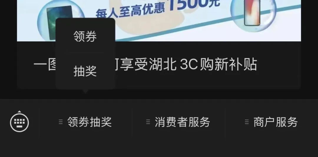 ☞第二步:点击微信下方菜单栏“领券抽奖”—“领券”