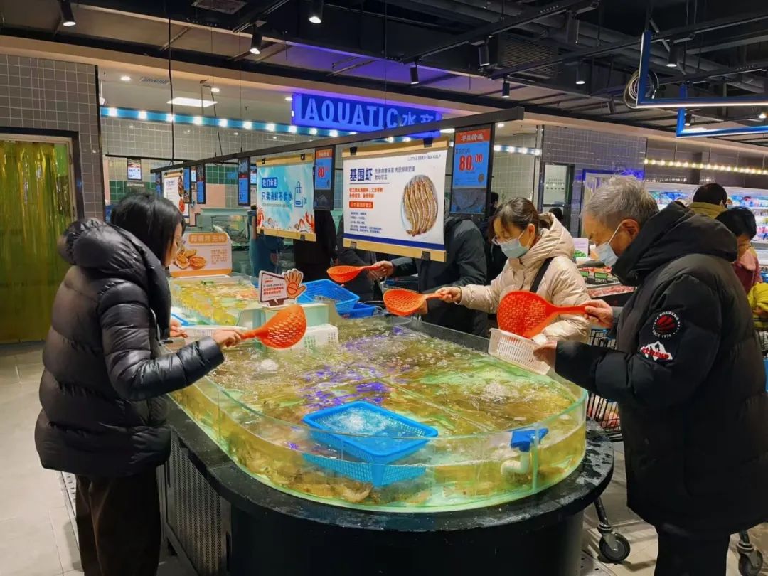生鲜区的“战果”也同样喜人。活蹦乱跳的鲜鱼、鲜嫩的猪肉、各类新鲜的蔬菜,都被市民们装进了购物车。“过年嘛,一家人围坐在一起吃顿丰盛的饭是必不可少的,所以我今天来多买点食材。”正在挑选蔬菜的王阿姨说。