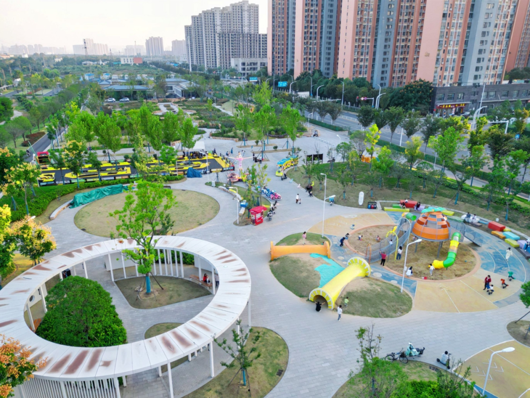 该公园位于白沙三路与光霞西路交会处,建有环山康体道、休闲漫步道,以及入口广场区、活力运动区、儿童游乐区等多个区域,可以满足不同人群、不同季节的健身需求。活力运动区内设置有篮球馆、羽毛球馆等,儿童游乐区设置有海盗船、滑梯、绳索等游乐设施。在这里,不仅大人可以健身锻炼,更是休闲遛娃的不二之选。