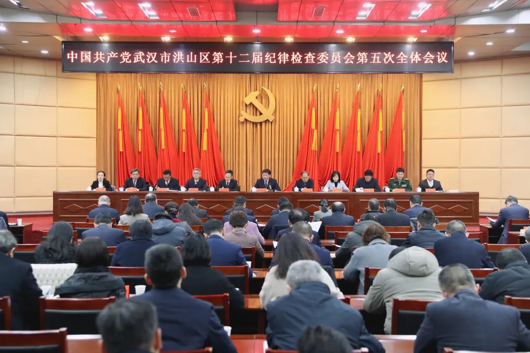 中国共产党洪山区第十二届纪律检查委员会第五次全体会议于2月8日举行。区纪律检查委员会常务委员会主持会议。杨宏代表区纪律检查委员会常务委员会作工作报告。