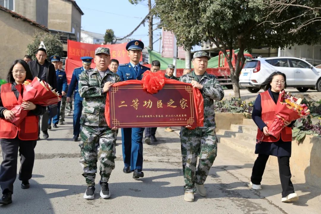 2月27日,洪山区洪山街道先建村热闹非凡,一支特殊的队伍吸引了街坊邻里们纷纷驻足观望。当天上午,军地双方代表满怀敬意,携手将“二等功臣之家”的牌匾以及立功喜报,郑重地送到了现役军人占昭伟的家中。