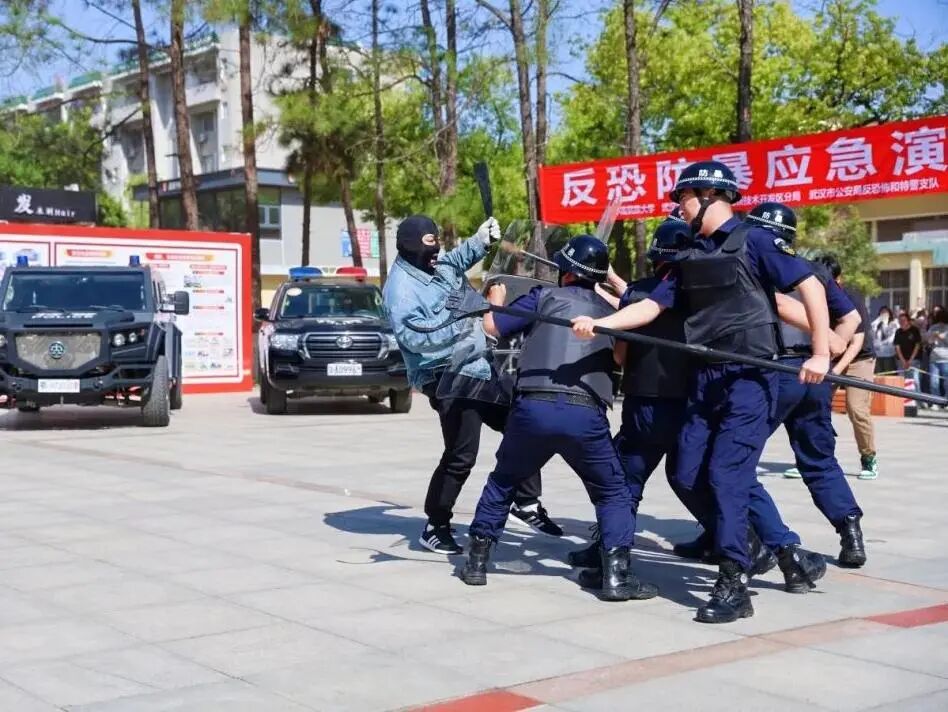 由市公安局特警支队、政保支队洪山区政保大队、南湖派出所等单位组成的“特警天团”空降华中农业大学,师生化身“安全特训生”,实地观摩枪械操表演和索降演训,沉浸式体验反恐防暴实战演练。