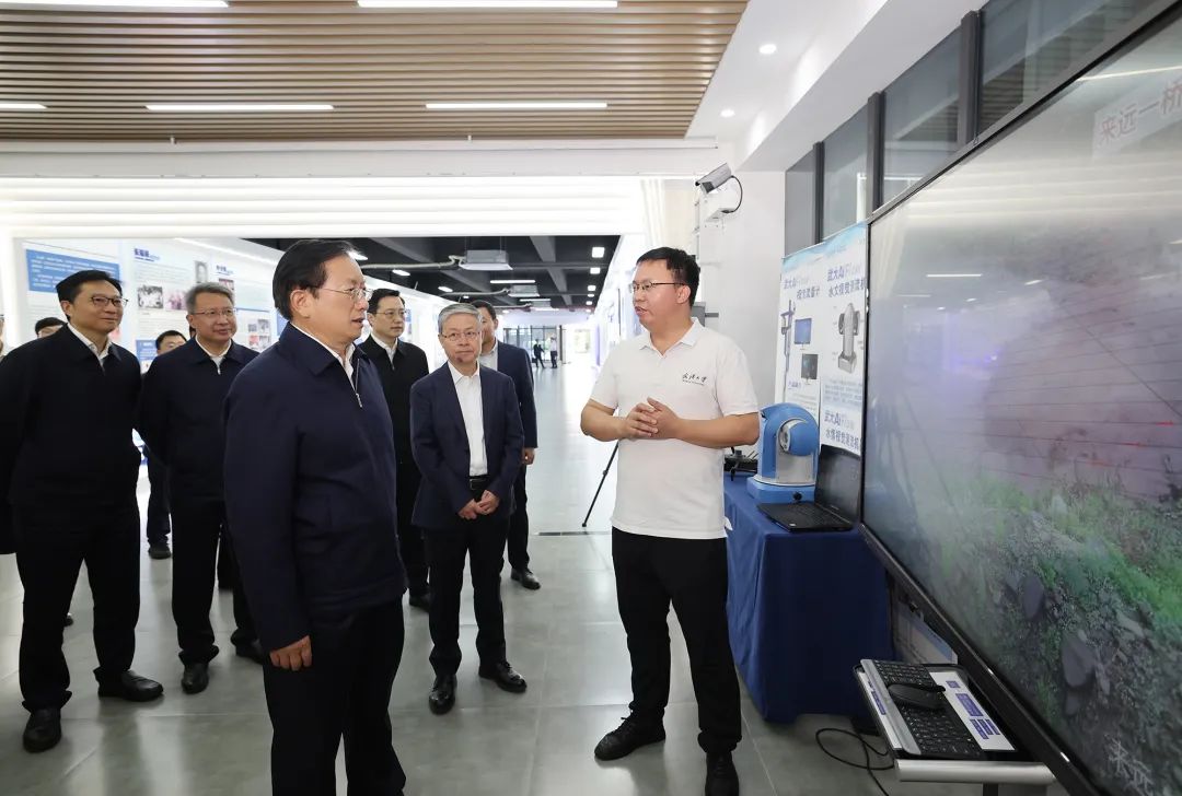 武汉大学马克思主义学院是首批“全国重点马克思主义学院”。王忠林来到学院文化长廊,听取学院历史沿革、师资队伍、大思政课设置等情况介绍;在党的创新理论研究阐释成果陈列室,了解学院最新研究成果,希望学院坚持“两个结合”,加强党的创新理论体系化、学理化研究阐释,把伟大抗疫精神融入大学生思政课,引导大家“心往一处想、劲往一处使”,更好凝聚奋进新征程的磅礴力量。在武汉大学水利水电学院水资源工程与调度全国重点实验室,王忠林听取学院党组织建设、人才队伍建设、大学生党员发展等情况介绍,参观学院科技成果展厅和全国科学家精神教育基地,了解视觉测流产品等智慧水利成果转化应用情况,希望武汉大学继续发挥水利学科优势,为湖北治山理水提供有力支撑。王忠林指出,城市因名校而闻名,名校因城市而发展。武汉大学是湖北的一张亮丽名片,为湖北经济社会发展提供了强大的人才和创新支撑。希望武汉大学在党的建设和“双一流”建设上继续走在前列。湖北将优化服务、强化保障,助力武汉大学加快建成中国特色世界一流大学。
