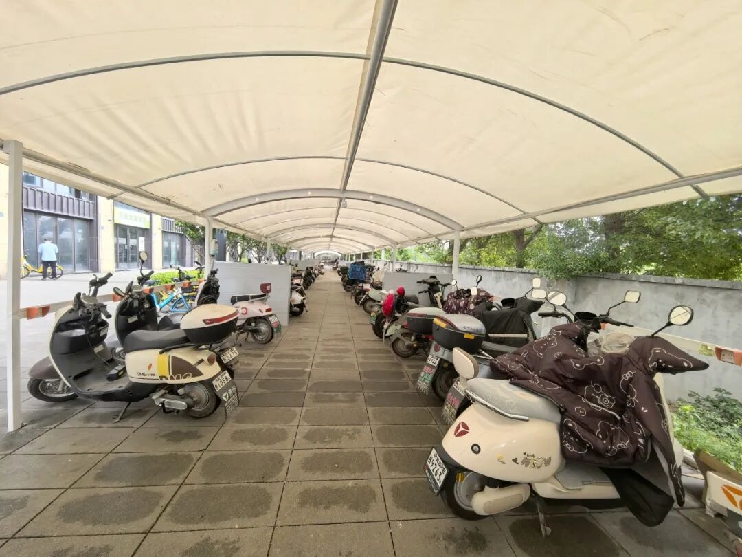 乐见城社区负责人介绍,新建车棚共有400多个停车充电位,基本能满足二期居民需求。停车棚与幼儿园之间留出安全距离44米,且留有一条通道可供居民正常出行。