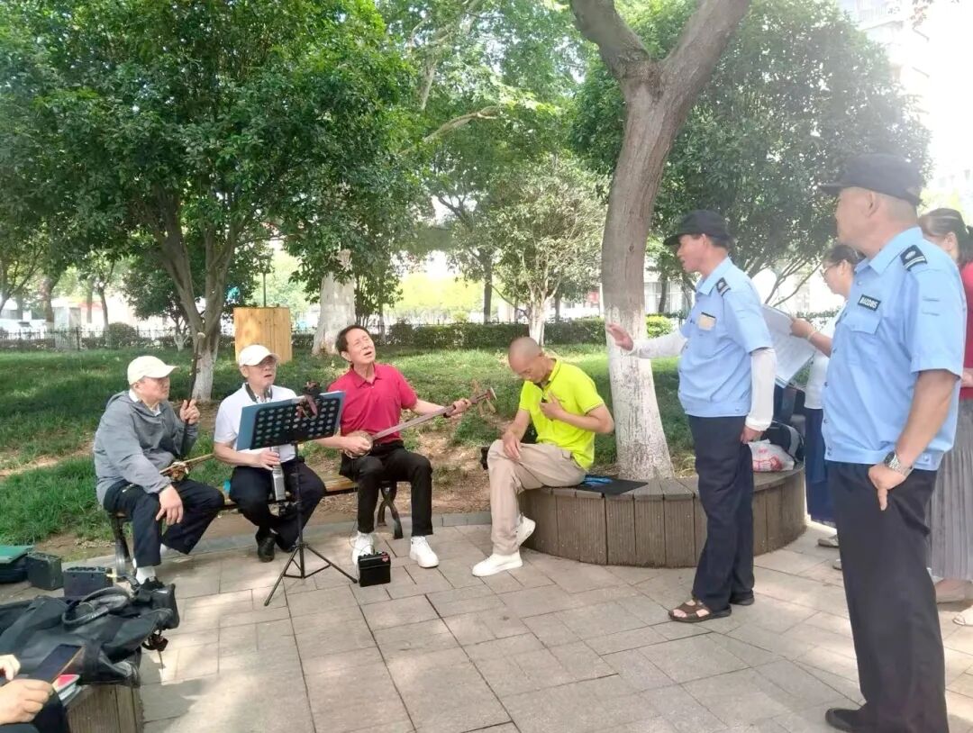 在关山公园,安保人员持续巡查,劝导市民游客遵守规定,禁用音响器材和乐器,劝阻产生噪声的行为。“关山公园周边紧邻居民区,责任重大。我们提前逐一告知了广场舞团队负责人,提醒其停止一切有噪声污染的文体活动。”园长钱雅婷介绍。