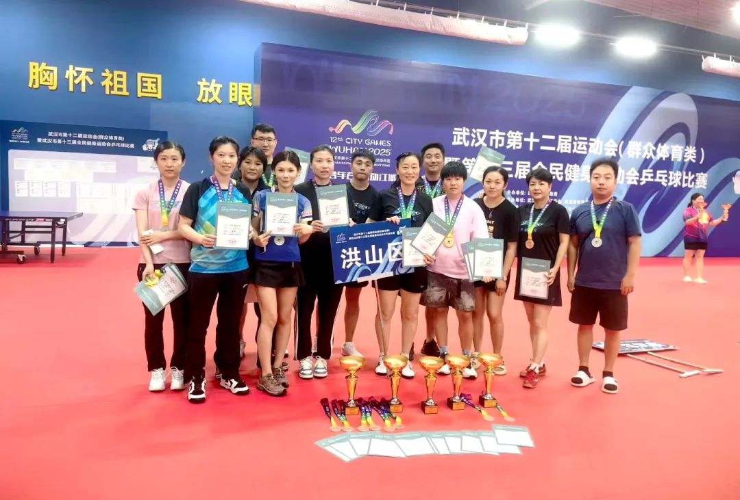 本次赛事于8月2日至3日在市体育运动学校乒乓球馆举行,作为武汉市最高规格的体育盛会,吸引了全市各区代表队展开激烈角逐。洪山区派出的22名优秀运动员在赛场上奋勇拼搏,最终斩获4金2银5铜的优异成绩,以111分的总积分傲视群雄。
