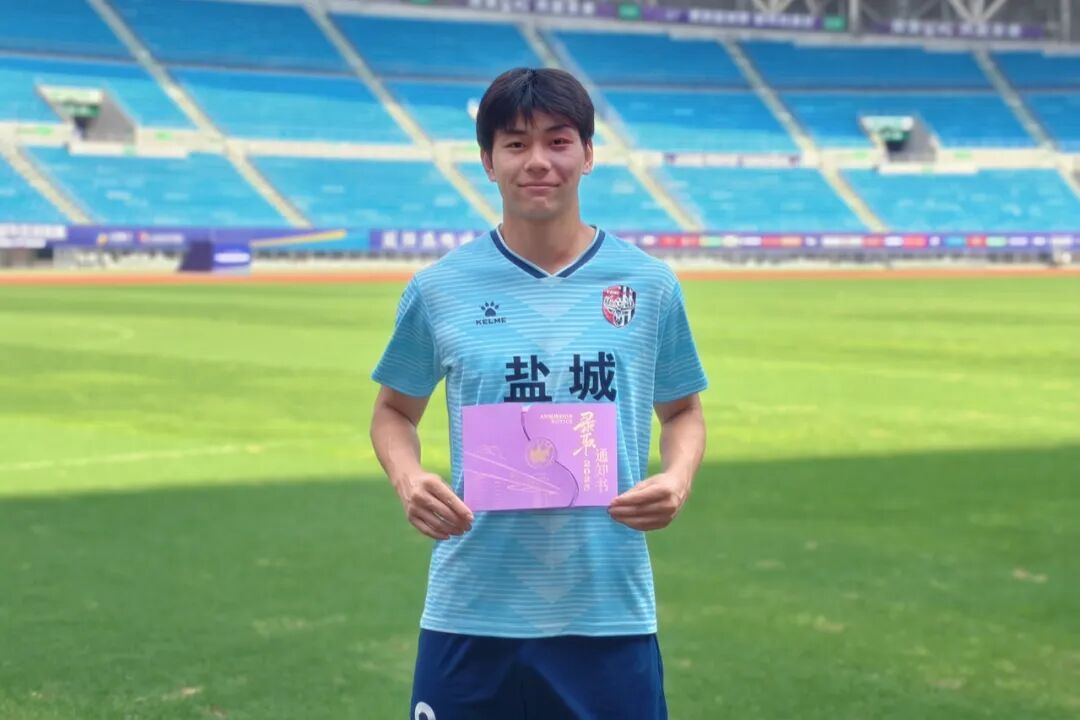 庞智超的足球之路始于盐城市新河实验小学。一年级时,他在校运会田径比赛中展现出运动天赋,随后被学校足球教练发掘并加入校队训练。之后,庞智超凭借扎实的基本功和刻苦的训练入选上海申花职业梯队,并在今年的“苏超”联赛中崭露头角。