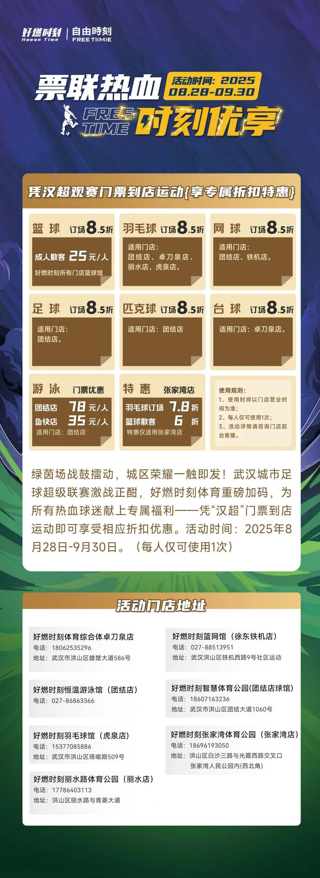 最近,武汉人的朋友圈都被2025城市足球超级联赛刷屏。就在武昌赛区,赛事运营方——武汉市好燃文化体育发展有限公司(没错,是咱们洪山区属国企!稳稳地靠谱)不仅办赛事专业,更要带你解锁一大波超燃运动项目(最重要的是凭汉超观赛门票享专属折扣)!