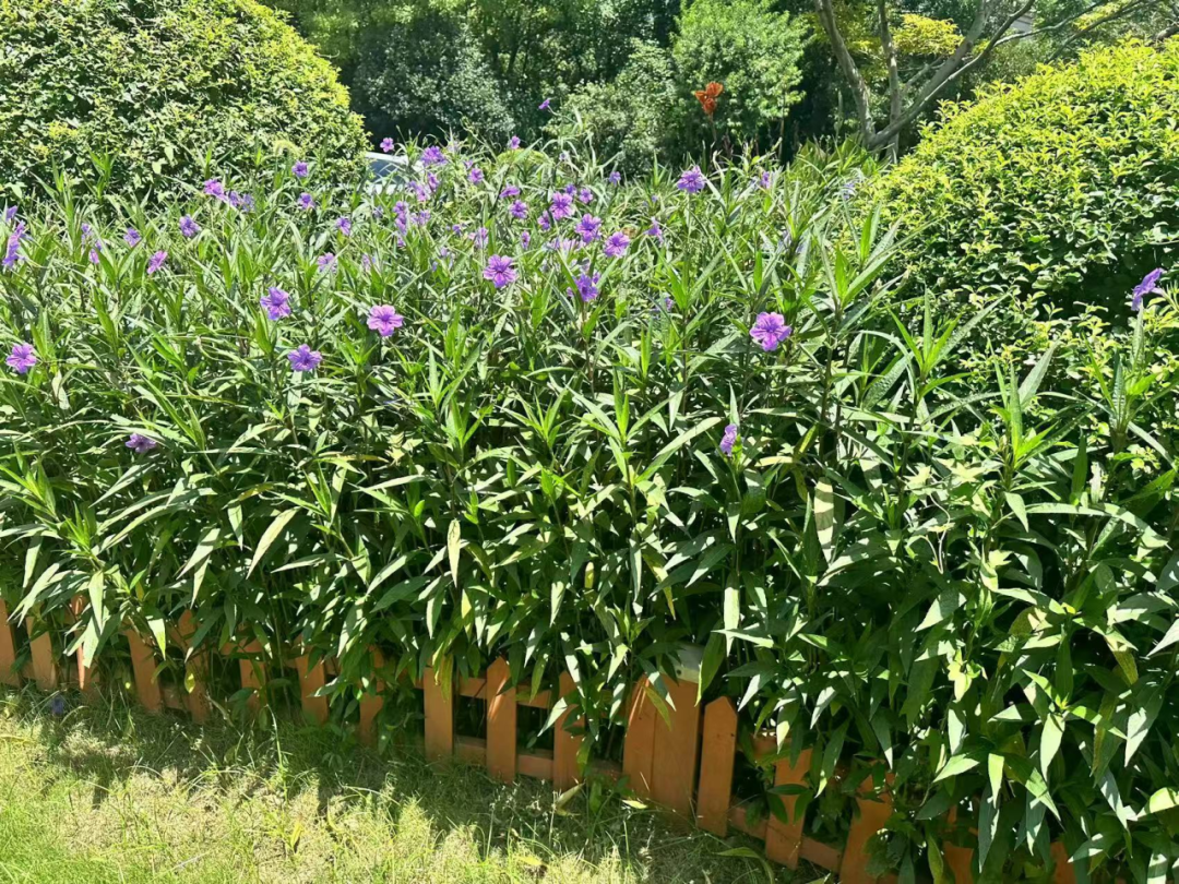 同一时间,关山公园花境中的翠芦莉也汇成一片紫色浪漫。正因它花量丰、花期长、易成花海,成为园林造景的“常客”。“翠芦莉整体花期非常长,能从春开到秋。但单花寿命极短,仅开放一天——晨开暮落,所以得名‘日日新’。”园长钱雅婷介绍。