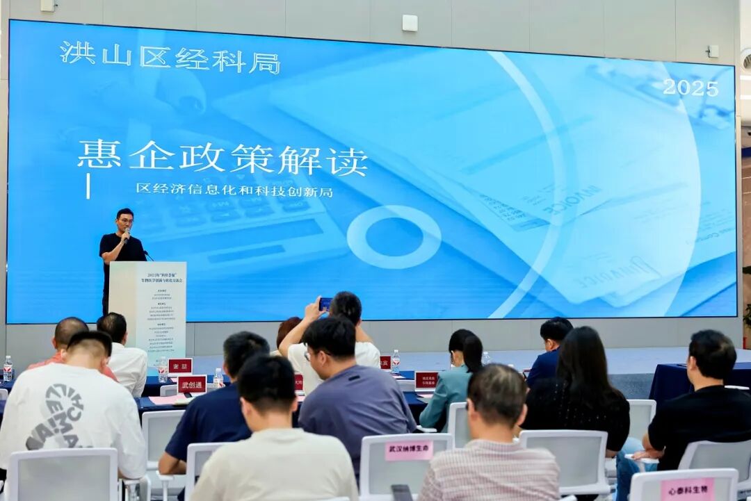 区经科局相关负责人介绍了洪山区最新惠企政策,重点讲解了政府主要支持方向,并对企业提档升级补贴资金项目,高企、“瞪羚企业”、科技领军企业奖励项目,科技资金“拨改投”项目等部分项目进行详细解读,充分展示了洪山优化创新生态、吸引创新资源落户的诚意与力度。