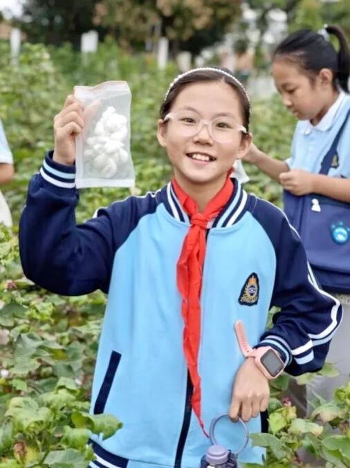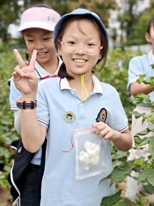 “原来棉花的苞叶会随着成熟变色。”田间不时传来惊叹声。“弯腰采棉一会儿就腰酸背痛,更能体会农民伯伯的辛劳。”学生李沐晨擦拭着额头的汗水感慨道。