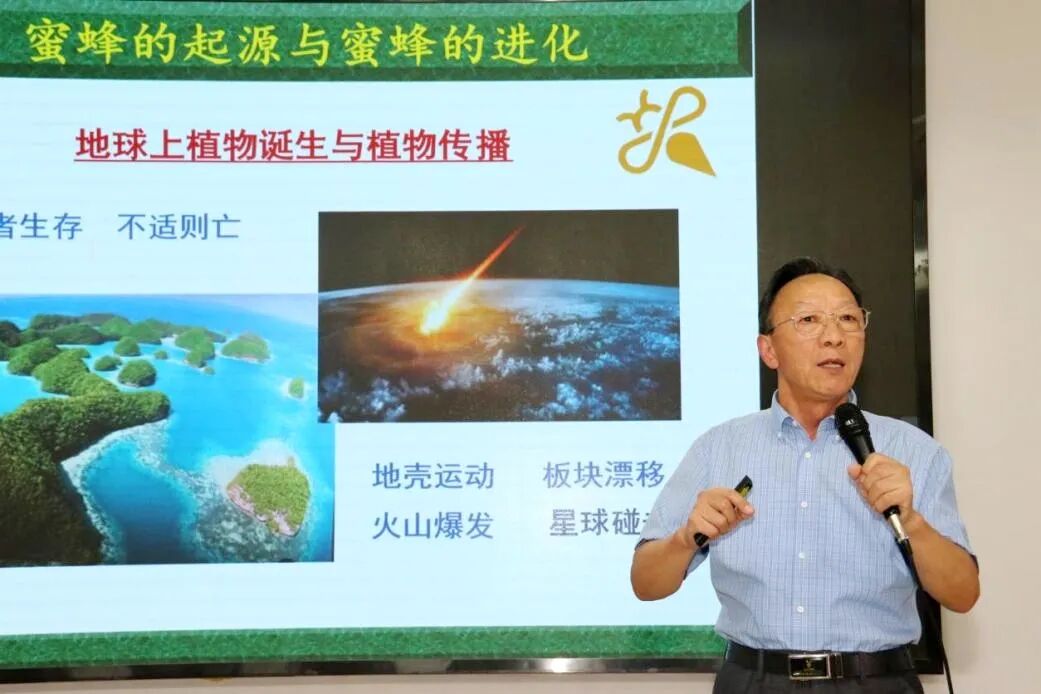张教授围绕蜜蜂的起源与进化、生物学与趣味学、生存竞争及生态保护等内容展开,介绍了蜜蜂1.35亿年的演化历程,讲述了蜜蜂与开花植物相互依存的进化关系,同时通过展示蜜蜂的身体结构、蜂群“三型蜂”分工,揭秘蜜蜂“5只眼睛”“舞蹈语言”等趣味知识。
