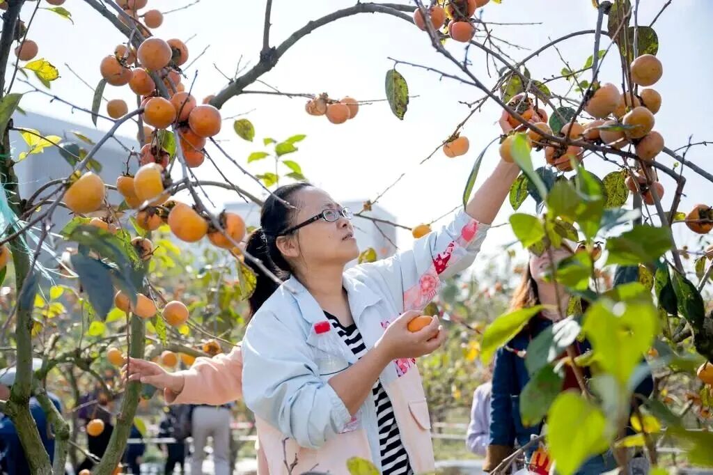 每逢10月下旬“狮山柿子节”开幕,华中农业大学15亩柿子园的近千棵柿子树硕果累累,犹如一个个小灯笼挂满树枝。柿子园内,学校师生、校友及校外市民共赏秋日盛景、共品柿子美食、共享丰收乐趣。