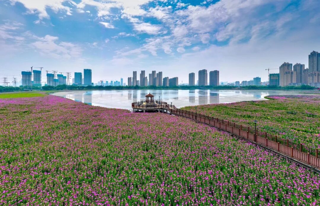 如今的杨春湖,不仅是水清岸绿的生态修复样本,更是市民向往的“幸福实景”:210亩鸢尾花海随四季更迭绚烂绽放,“水下森林”中鱼群穿梭、清澈可见,绿头鸭、夜鹭等水鸟重回安家,翩跹起舞。骑行道蜿蜒,观景台错落,隔湖相望,武汉站的现代轮廓与自然湿地共存于同一画面,仿佛城市与自然达成了一场默契的和解。