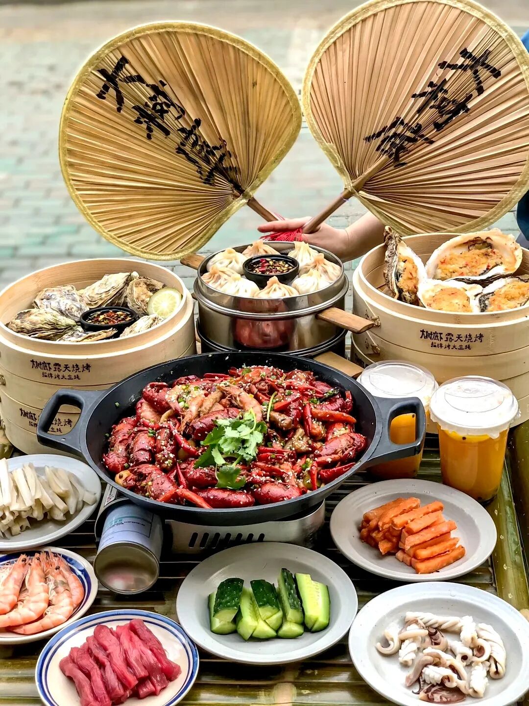 位于虎泉夜市的“天堂寨吊锅”和卓刀泉寺正对面的“大树底下”美食摊,吸引无数食客前来打卡。“大树底下”的干锅小龙虾堪称一绝,配料丰富,红薯条、基围虾、黄瓜条等满满一锅,麻辣鲜香,叫人欲罢不能。