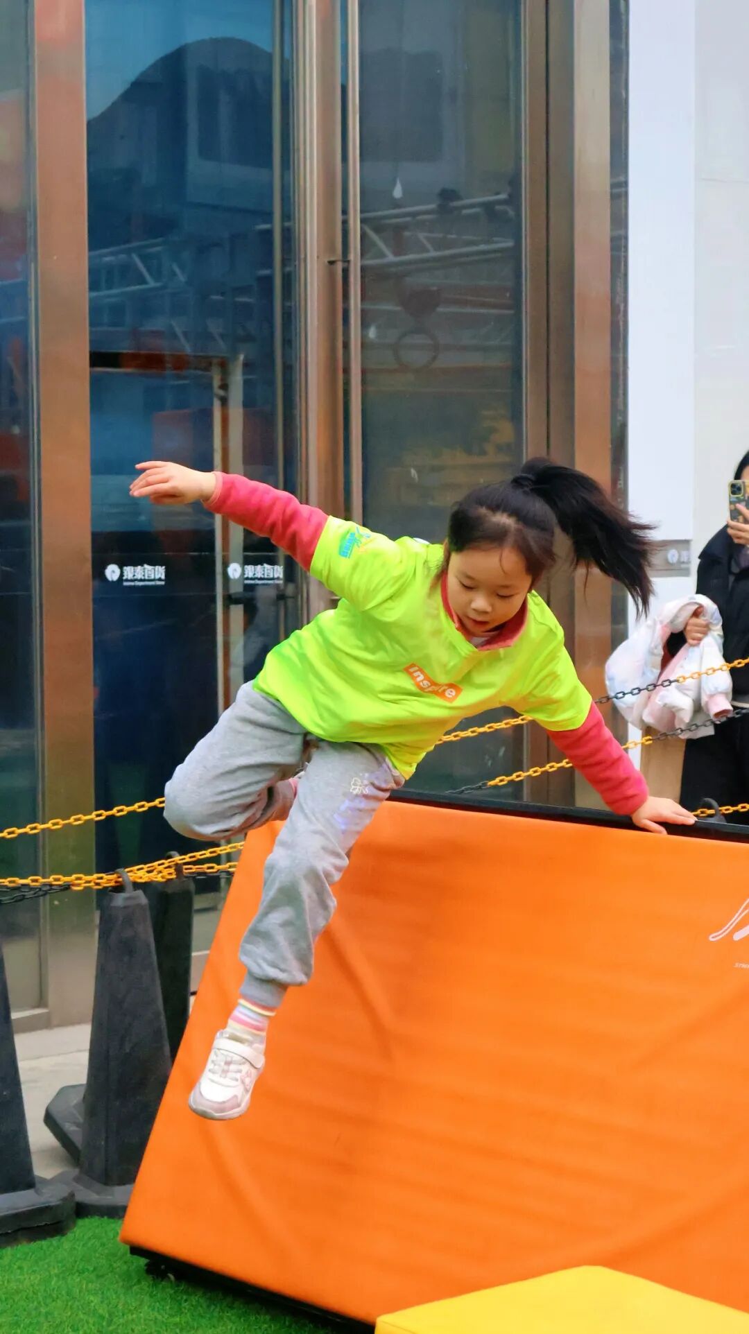 在全民体能挑战区,来自全市的300组亲子家庭成为赛场另一道风景。孩子们在趣味障碍赛中灵活穿梭,在力量项目前全力拼搏,家长则在旁加油助威,欢声笑语不断。这场融合趣味、挑战与协作的亲子赛事,成功吸引家庭客群涌入商场,带动儿童业态、餐饮及休闲消费显著升温。