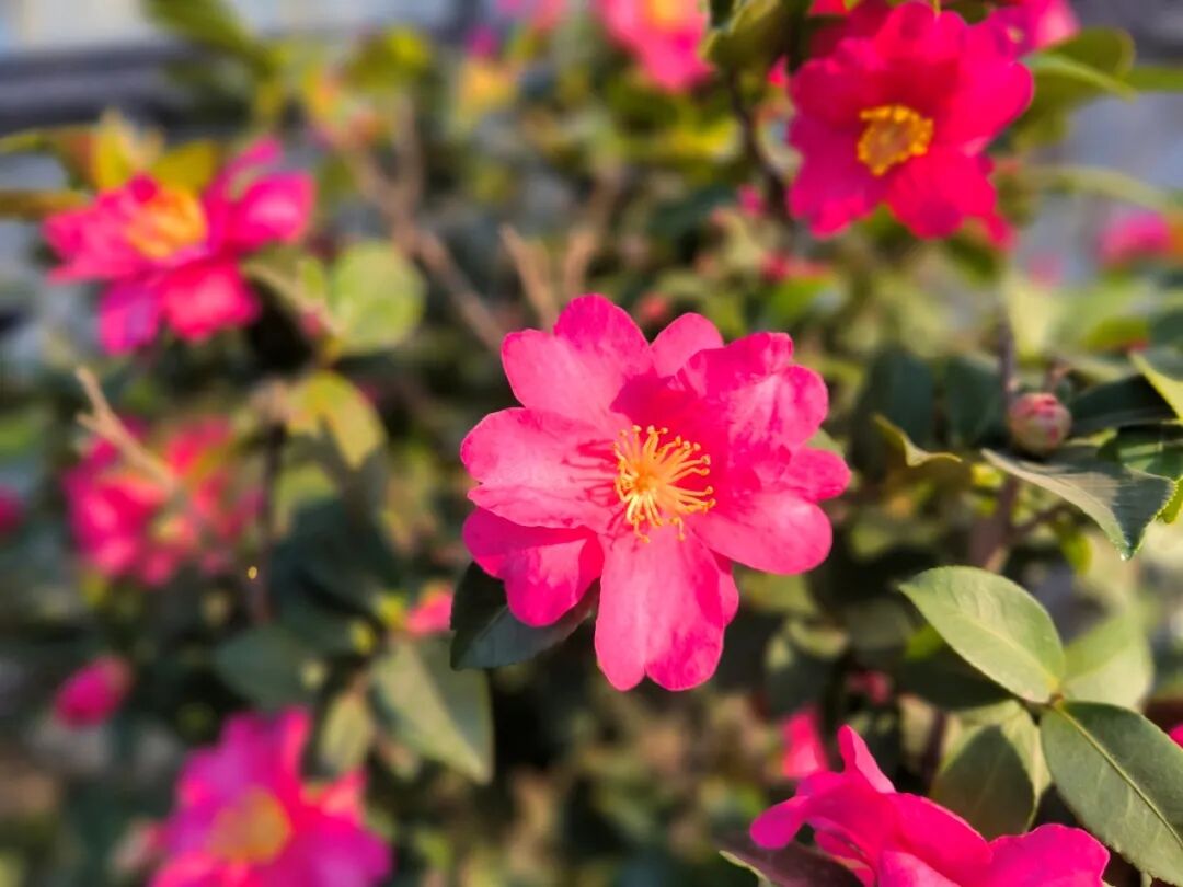 据了解,茶梅因叶似茶、花如梅而得名,花期较长,可从11月持续开放至次年3月,具有较强的耐寒性。眼下,花朵上偶见晨霜凝结,在阳光下晶莹闪烁,别有一番韵致。