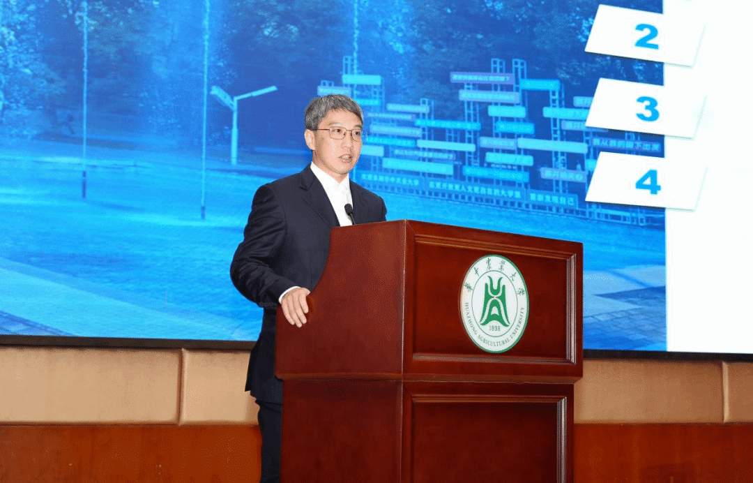 他提出,生命科学交叉学院要引领学科范式变革,深化学科交叉融合,推进产教融合、科教融汇与国际合作,将学院建成世界生物育种与农业合成生物学拔尖创新人才培养高地、服务国家粮食安全与生命健康重大战略的一流农业生命科学创新策源地、农业生物产业高质量发展的创新引擎与先行区、世界一流科技人才的富集区、具有全球影响力的生命科学国际交流合作中心。他勉励师生在“敢闯敢干、追求卓越”的奋斗精神指引下,克服困难,努力把蓝图化为现实。