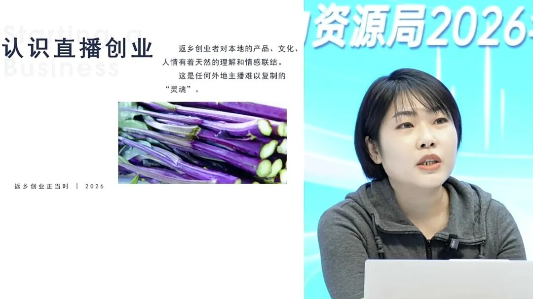 随后,活动聚焦“返乡创业”主题,邀请湖北省华龙职业培训学校讲师蒋倩倩讲授“网络创业(直播版)”标准课程,深入解析“直播创业七步法”核心方法论,为返乡创业者提供逻辑清晰、操作性强的行动指南。直播过程中还结合多个成功案例,细致剖析创业过程中可能遇到的堵点、痛点,助力创业者提前规避风险、稳健起步。