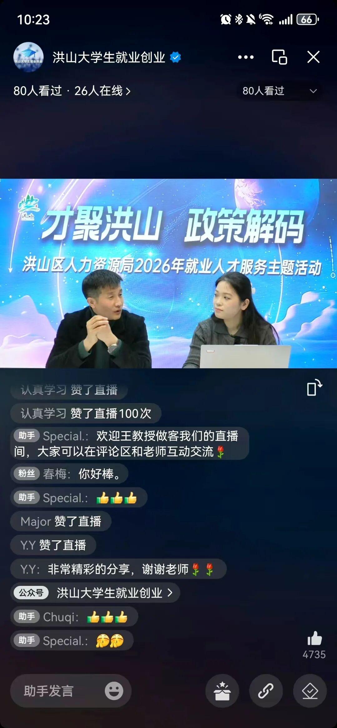 本次直播既是洪山区深化创业服务、优化区域创业生态的具体实践,也是一次面向高校师生与返乡创业者的规模性赋能培训。洪山区人力资源局相关负责人表示,将持续丰富服务供给,通过多元化平台精准推送创业扶持政策、对接资源、开展指导,以更务实、更贴心的举措,支持每一位创业者在洪山这片热土上找准方向、汇聚资源、稳健启航,共同为区域高质量发展与乡村振兴注入蓬勃的创业新动能。