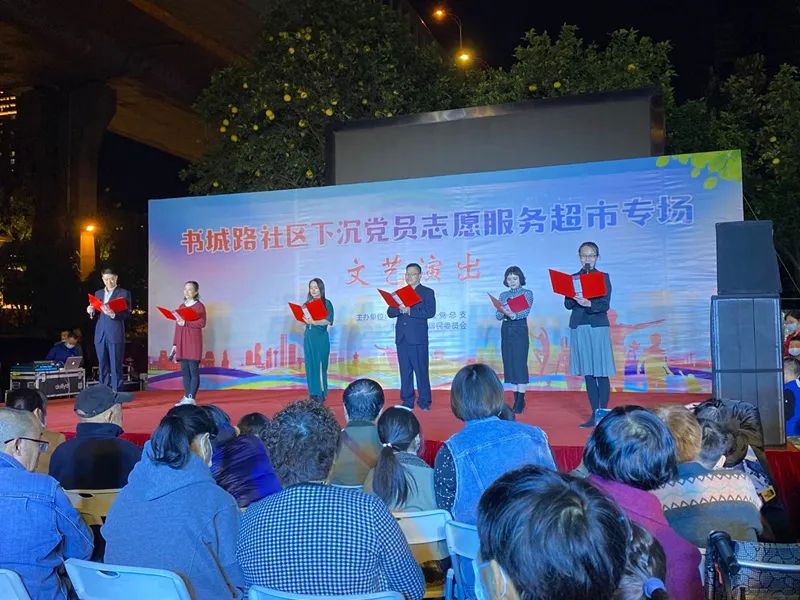 当天,由武汉市洪山区狮子山街书城路社区党总支、书城路居民委员会主办,近百名下沉党员主要参与的书城路社区下沉党员志愿服务超市专场文艺演出成功举办,吸引了附近四五百名居民前往观看。