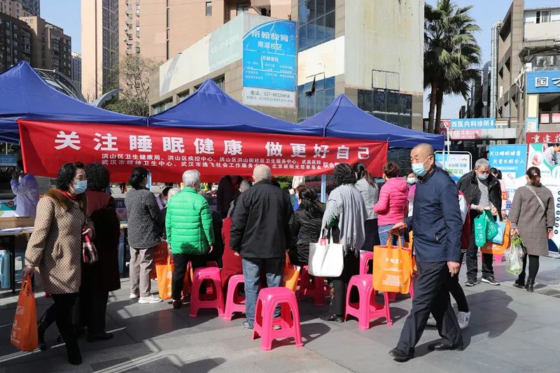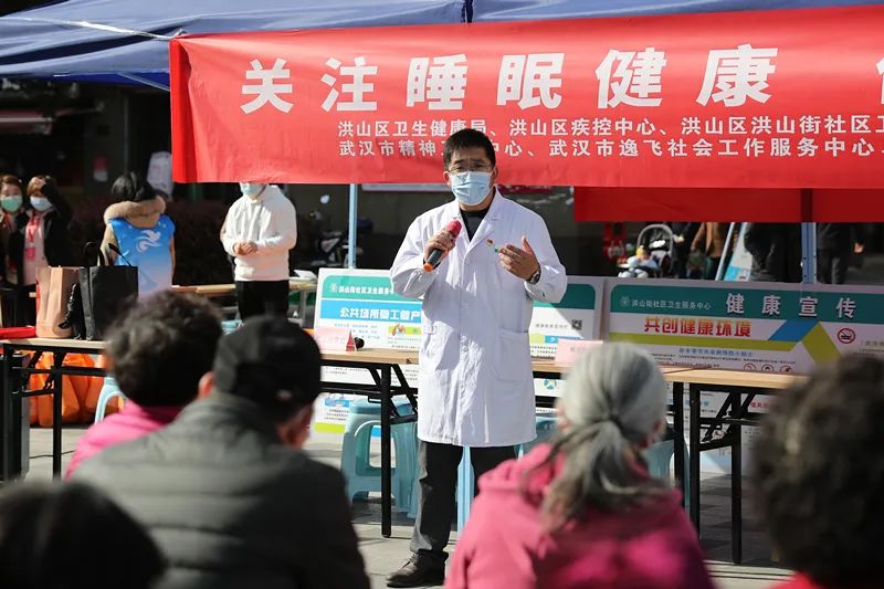 本次活动由洪山区卫健局、区疾控中心、武昌医院、洪山街卫生服务中心、市精神卫生中心及市逸飞社会工作中心联合举办,活动设有主题讲座、睡眠测评、义诊咨询、免费赠药、宣传品发放等。