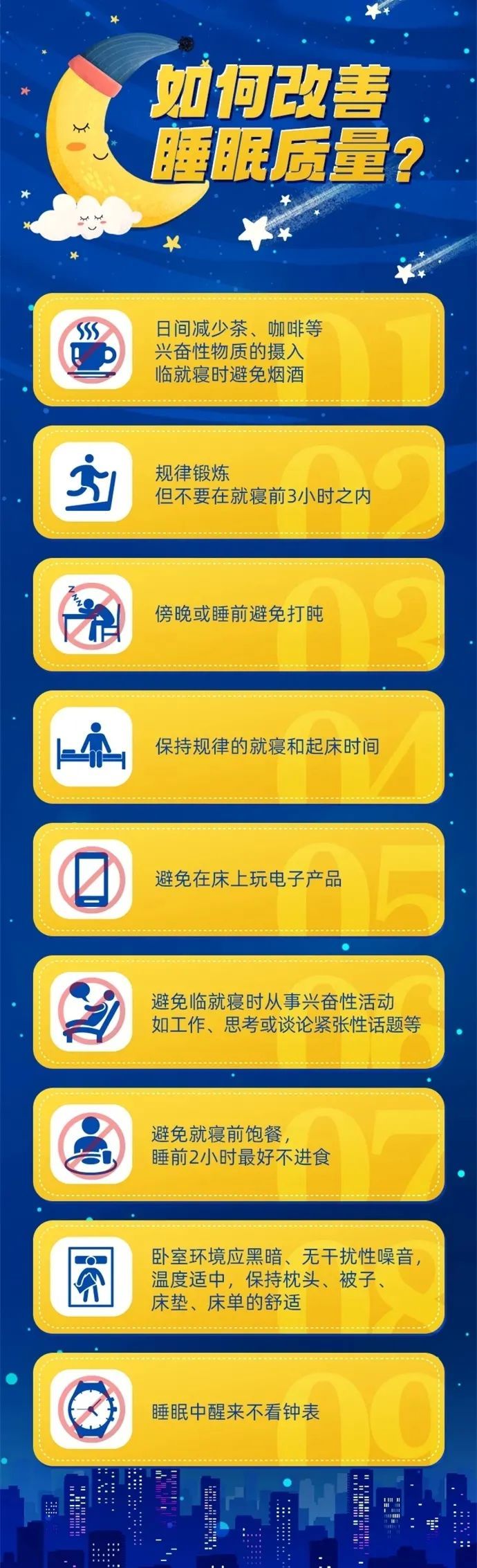 他呼吁,健康生活应从良好的睡眠开始,而保证良好睡眠则要从自身改善做起,作息规律增强运动是首选。