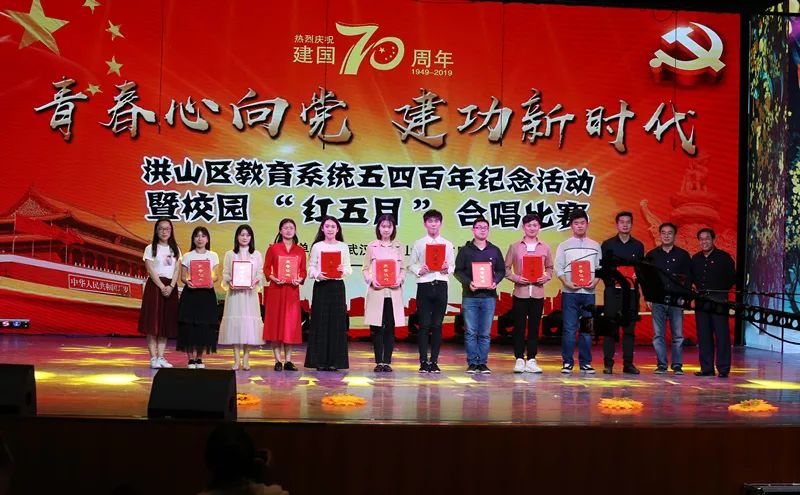 长江日报融媒体5月10日讯 一首红歌,记录一段拼搏岁月,一曲华章,谱写一段青春故事。5月10日下午,洪山区教育系统“青春心向党 建功新时代”五四运动百年纪念活动暨“红五月”合唱比赛,在洪山区文体局小剧场唱响,31所中小学幼儿园1200余名师生登台比拼。