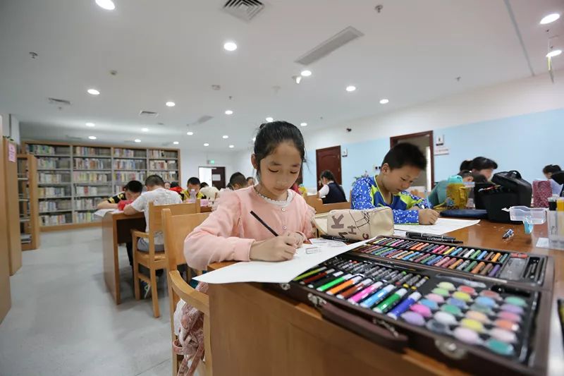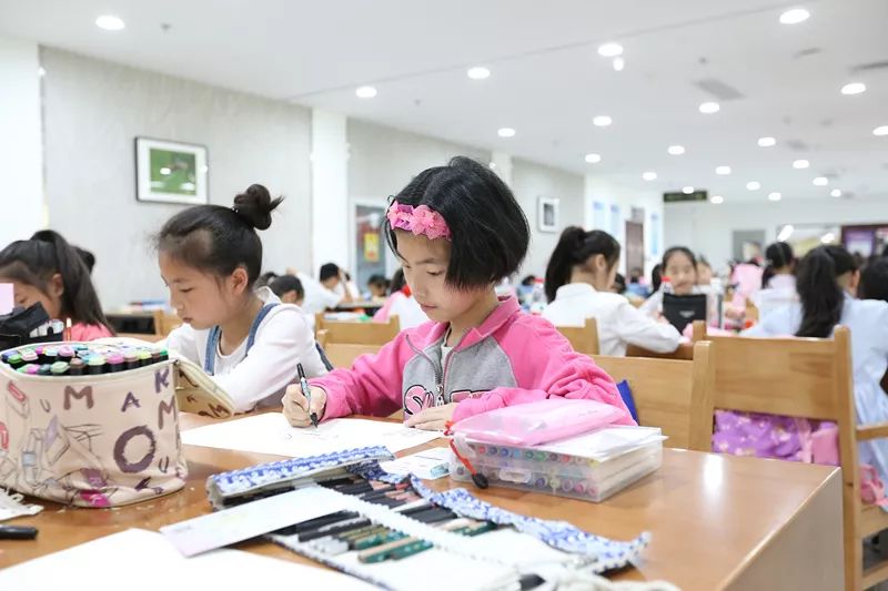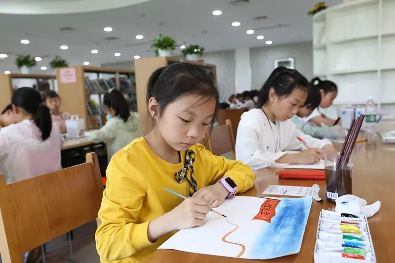 长江日报融媒体5月11日讯 5月11日,第34届洪山区“马良杯”书画比赛在洪山区图书馆开赛,辖区65所中小学推荐的近700名中小学生,围绕“绽放中国梦 共享五洲情”为主题,开展同场竞技,描绘心中的大美武汉。记者在现场注意到,即将在武汉举行的世界军运会成为参作品中的主角。