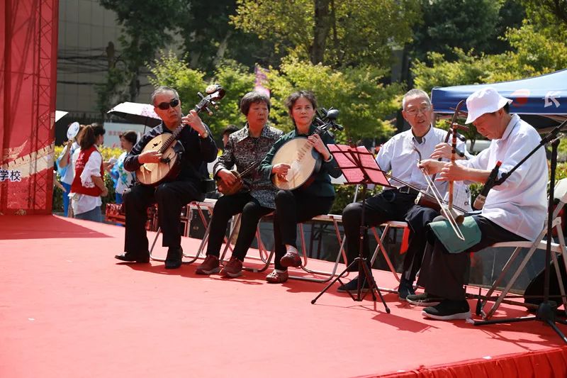不仅有超高实用性的便民服务,社区居民还自发编排了一场精彩的文艺演出,京剧、吉他弹唱、汉服舞蹈、手语操等节目。其中,演出还特别穿插了军运小知识抢答环节,寓教于乐,居民们积极互动,现场一片欢声笑语,将今天的主题活动推向高潮。