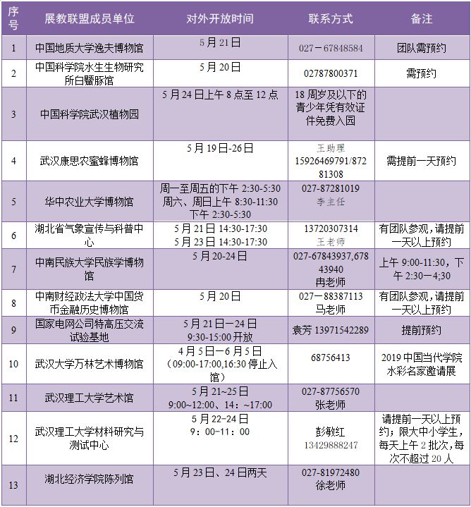 科技周期间,洪山区13家科普展馆将向公众免费预约开放,具体时间及安排如下:
